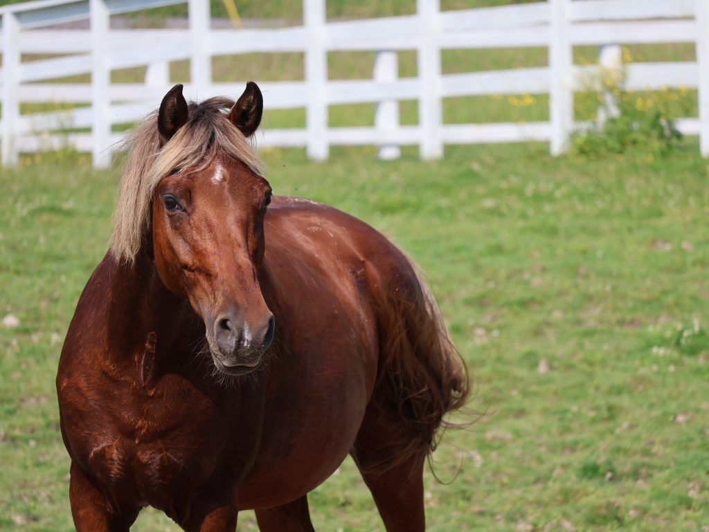 Roxie is a very sweet and friendly mare who tends to be on the submissive side in the herd. She has been turned out with mares and geldings and does very well with both. She is currently barefoot and living outside 24/7 with a run-in shed. She has also been stalled at night and does well in both management situations. Roxie is a very easy keeper, so she’d do well with limited pasture or managed grazing. She is good for the vet and farrier.