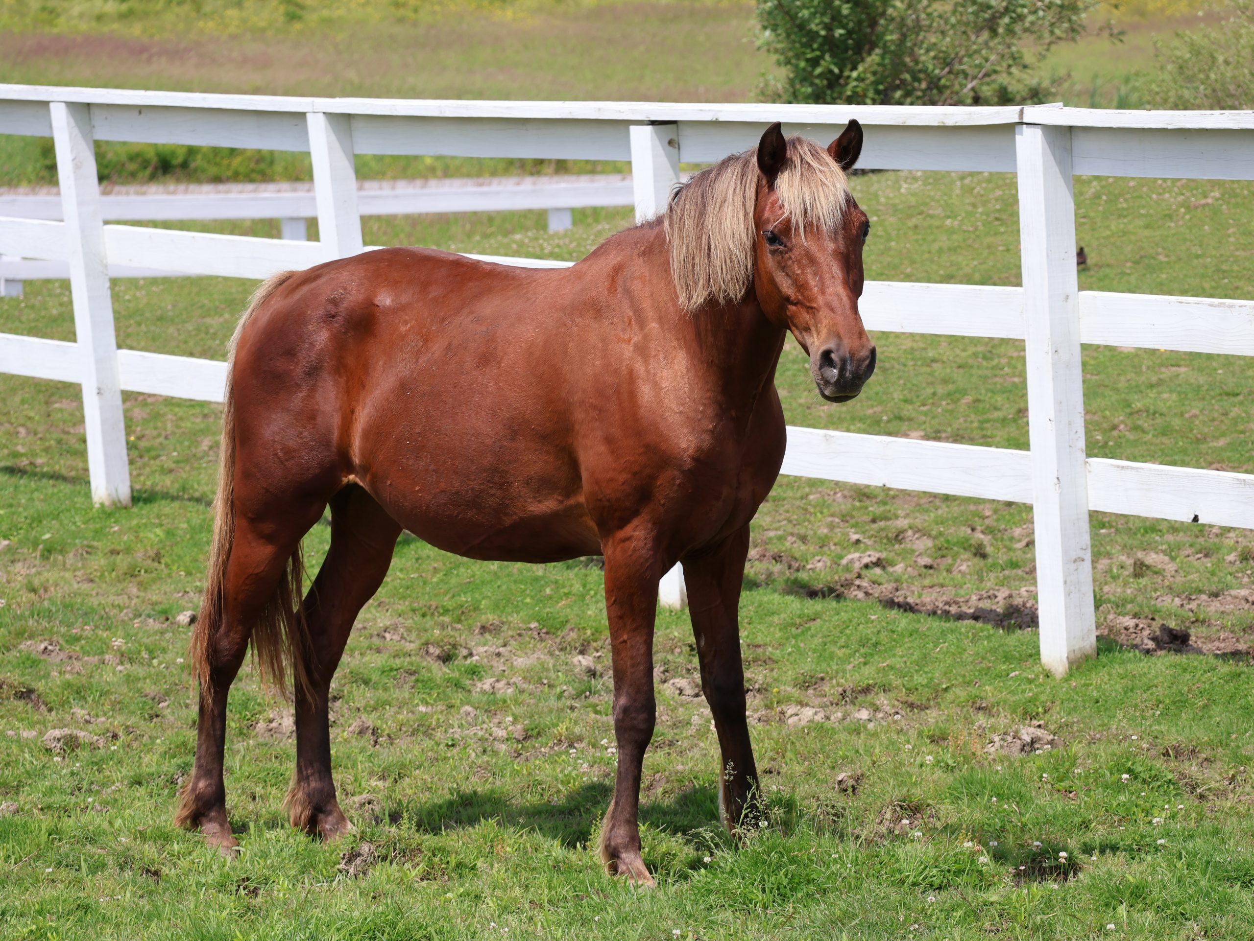 Roxie is a very sweet and friendly mare who tends to be on the submissive side in the herd. She has been turned out with mares and geldings and does very well with both. She is currently barefoot and living outside 24/7 with a run-in shed. She has also been stalled at night and does well in both management situations. Roxie is a very easy keeper, so she’d do well with limited pasture or managed grazing. She is good for the vet and farrier.