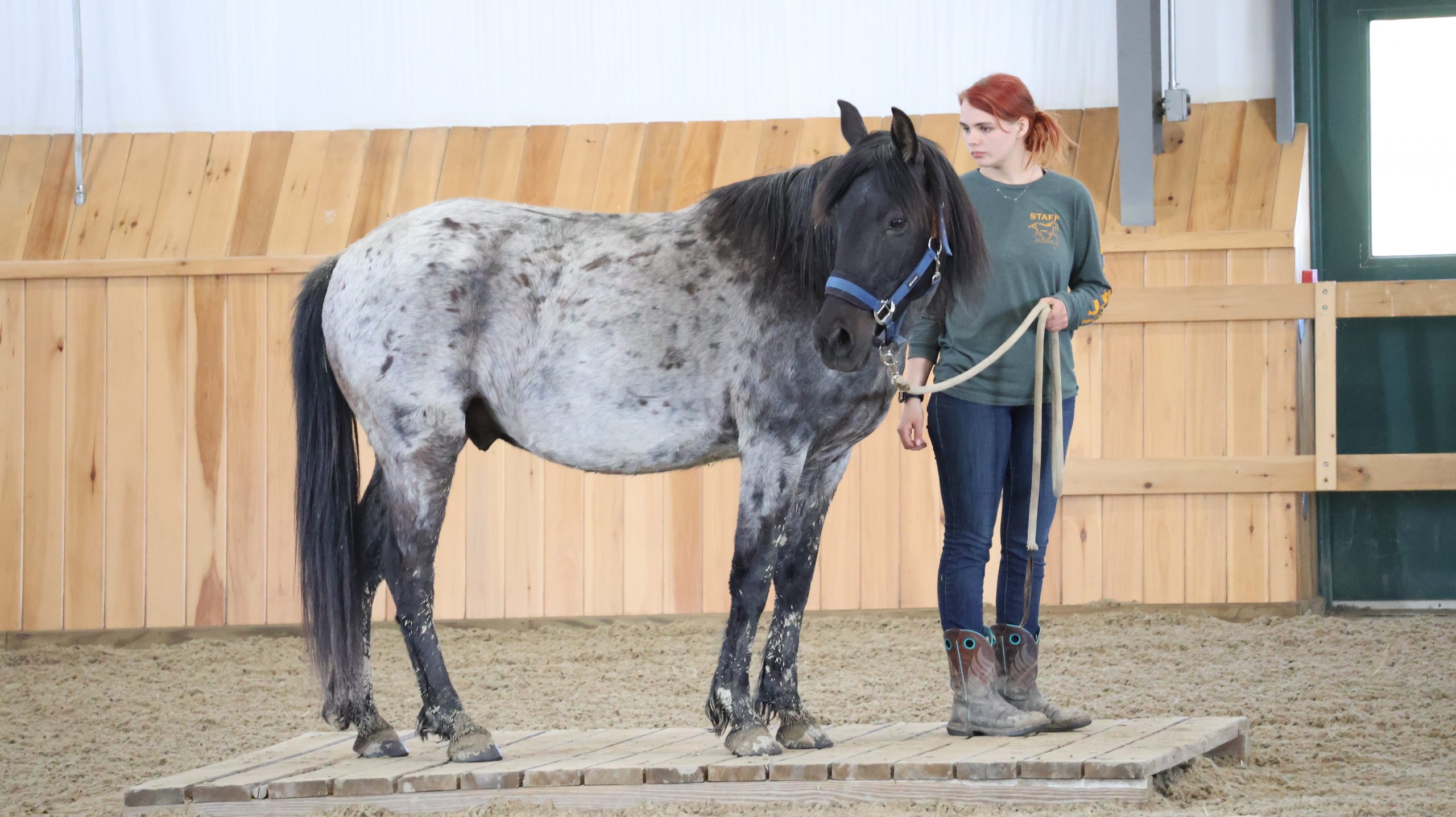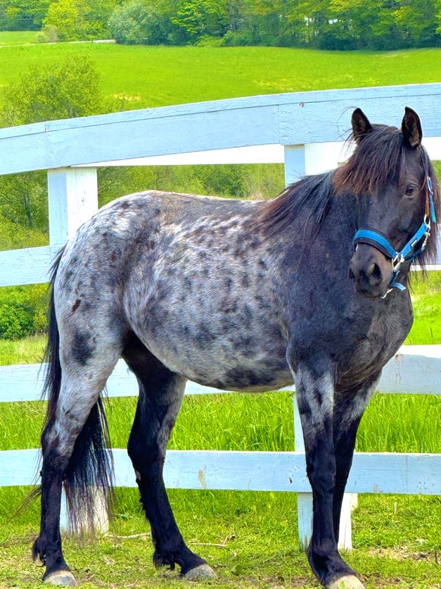 He currently spends his nights in a stall, but would also do well in a run-in setup. He is good for the vet and farrier. While at the Society, he has developed heaves – he has no history of this condition prior to coming to the farm. He is currently managed on soaked hay at night and dry hay during the day as we try to minimize his symptoms. He is not on any medications. We are hopeful that something at the farm is causing his breathing issue and that, with a change of scenery, it will resolve.