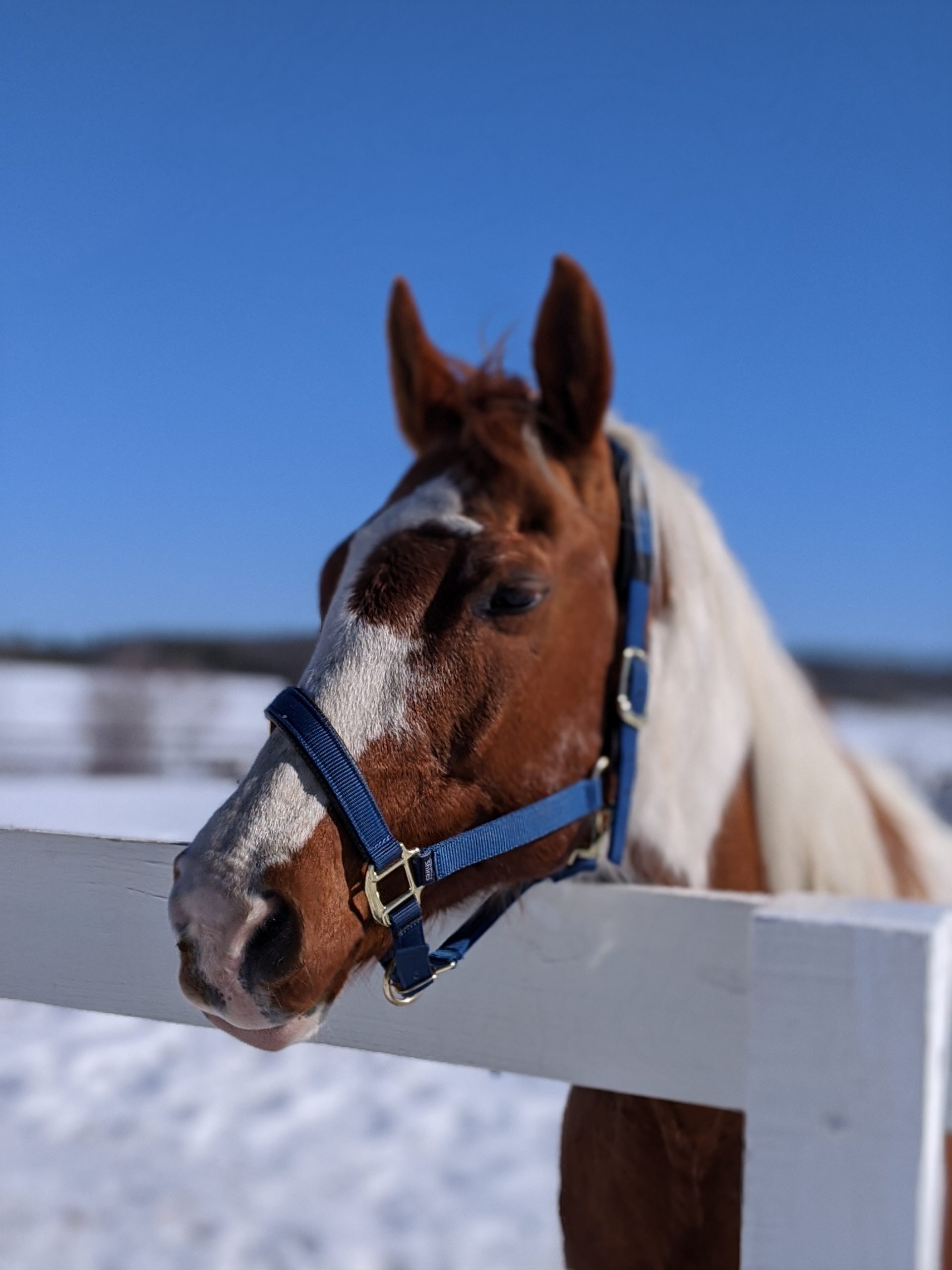 Jim Warner, though still reeling from the unexpected fire and significant loss of his beautifully restored 1800s post and beam barn, has already traveled to the MSSPA to reunite with Ducky and Pearl in their temporary home. Both girls joyfully greeted Jim before returning their attention to their most favorite thing at the shelter, the hay pile! While MSSPA more commonly offers refuge to horses removed from neglect, everybody at the shelter was happy to open the paddock gates for the beautifully-cared-for and friendly pair of Ducky and Pearl. In addition to its core work of equine sheltering, MSSPA is available to help Maine horses and horse owners in a variety of situations, when emergencies such as this occur.
