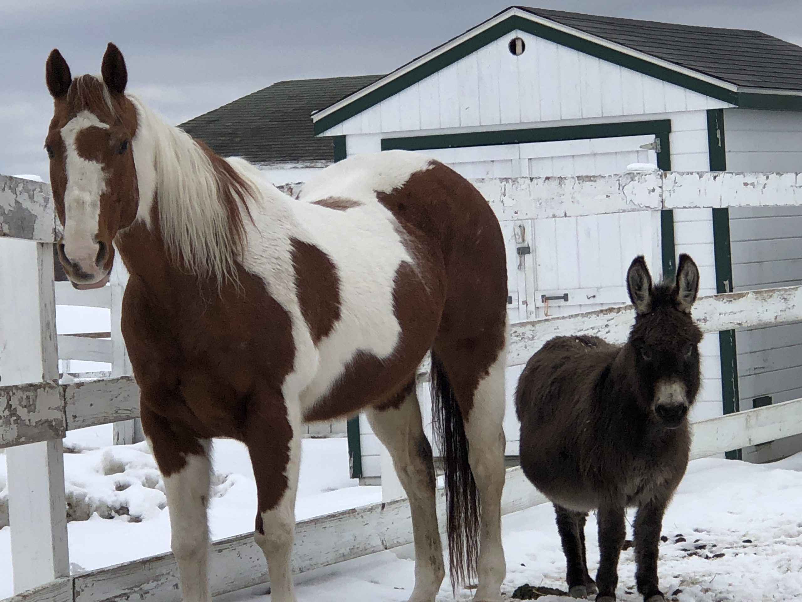 Thanks to the good work of local officials, including the animal control officers involved, the Maine State Society for the Protection of Animals was able to immediately respond. Truck, trailer, and experienced horse handling staff were dispatched to the scene where, with the help of their distraught but relieved owner, Pearl and Ducky were loaded for a quick trip to New England’s premier horse shelter in Windham, Maine. Both horse and donkey were safely transported and settled into their temporary quarters without incident. The following day, nearly all of the poultry were safely accounted for. Since then, Jim Warner has learned that the fire started when his tractor battery exploded while charging in the barn. He knows he won’t ever chance charging unattended again, and he wants other folks to have the benefit of this knowledge.
