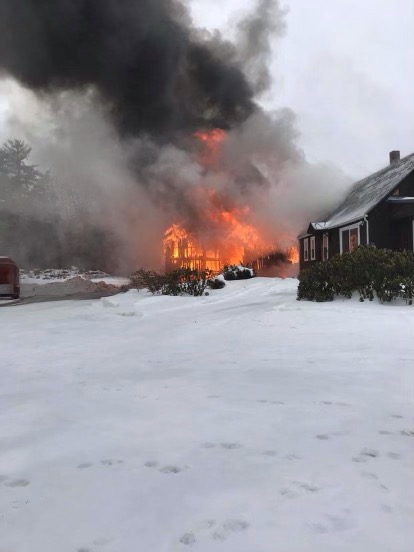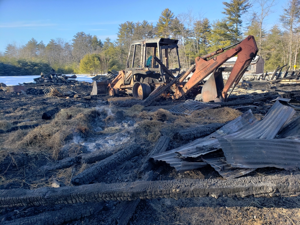 There are few events that are more frightening than a barn fire. Particularly if that barn is home to beloved animals and filled with all that is necessary to operate your farm. Sadly, that is just what happened to Shapleigh homeowner James Warner on Tuesday, February 16th. Although Mr. Warner was at home when the fire erupted in his barn, winds were blowing away from the residence, and he was not aware of the situation until the building, filled with hay and feed for his poultry and livestock as well as farm equipment, was fully engulfed. Fire crews from several towns, including the Shapleigh fire department, fought the blaze. They arrived in time to save the residence; however the barn was a total loss.