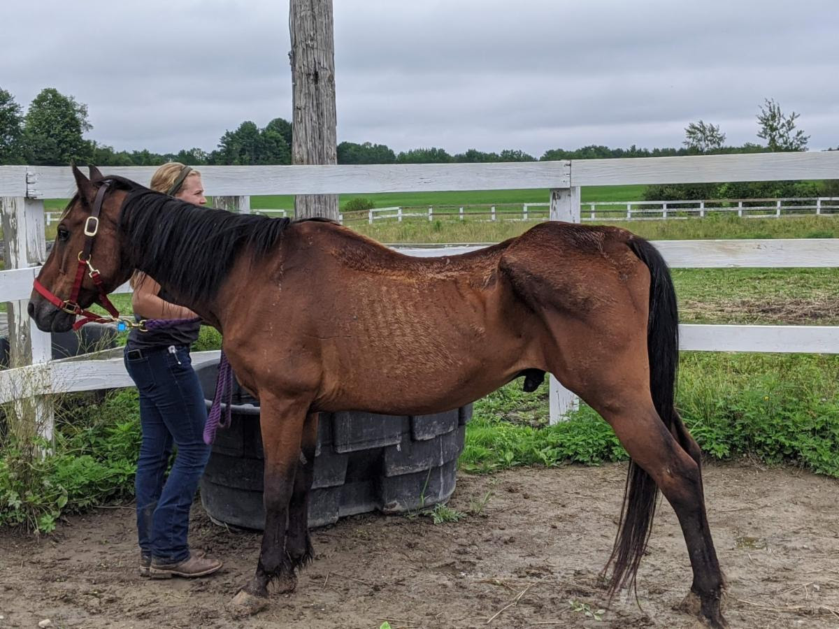 Watching this older gelding hobble slowly off the trailer was truly heartbreaking.