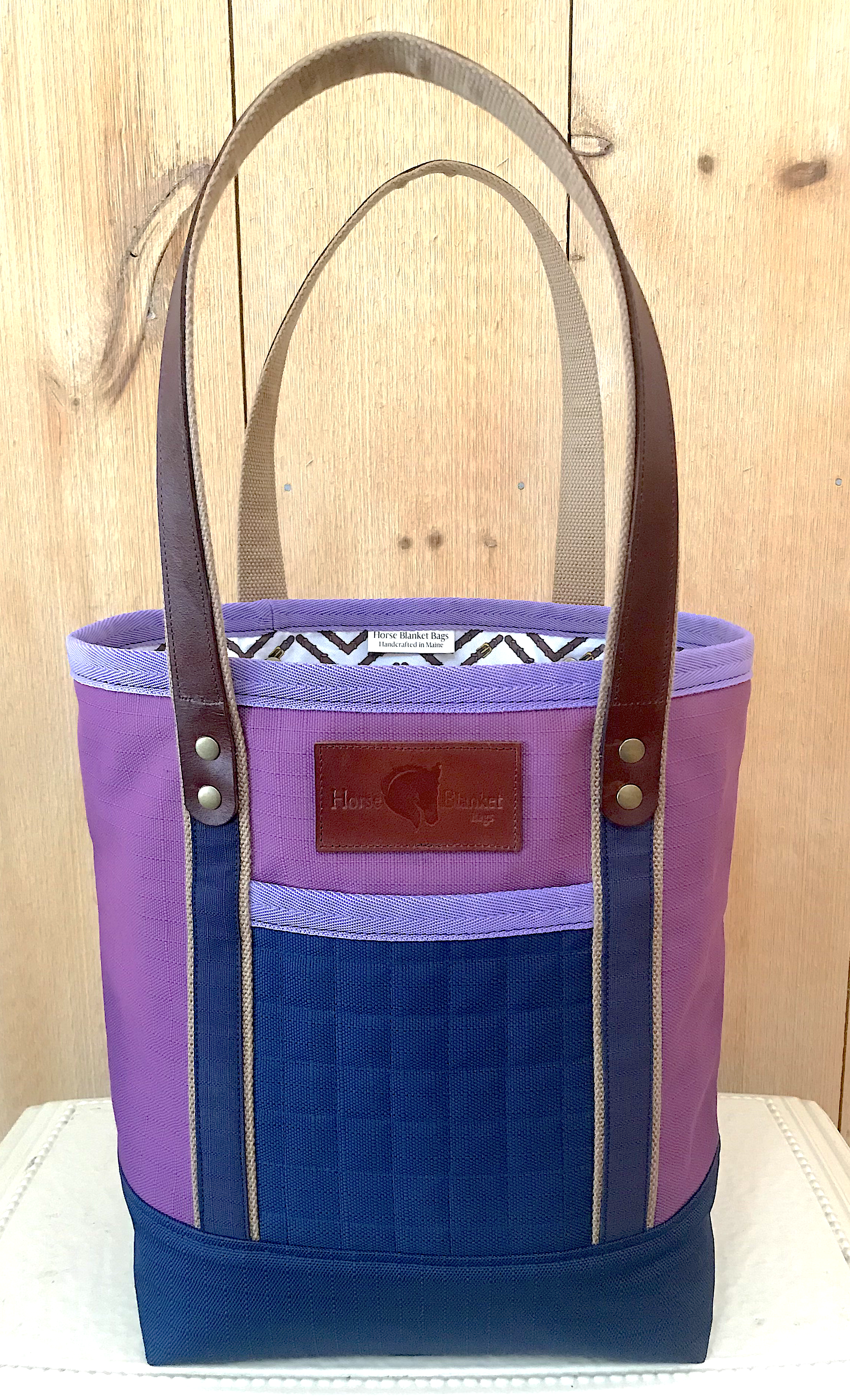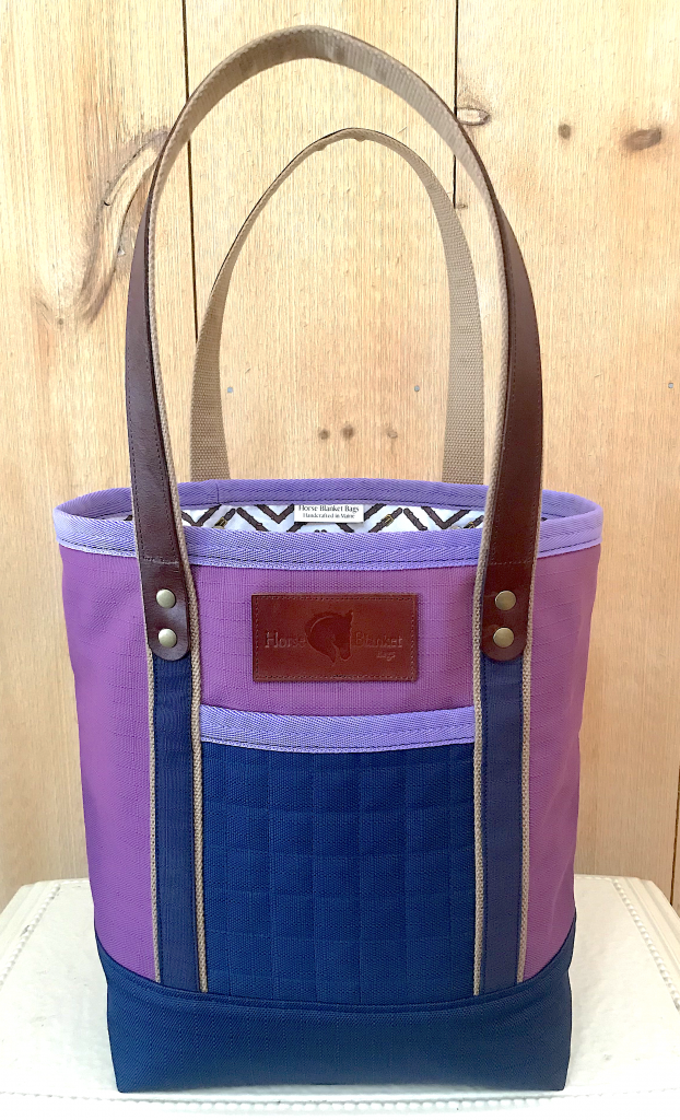 In addition to being community-minded MSSPA supporters, Alexandra and Katie are passionate about caring for the natural environment in Maine by diverting blankets that would otherwise end up in the landfill. Since 2019, the pair have been working together to create high-quality bespoke bags from blankets that are no longer usable or that were kept for sentimental reasons. The two business partners first met in 2017 when Katie came to Alexandra’s barn in Lincolnville, Moose Ridge Farm, looking for dressage lessons. With a shared love of horses and art, Alexandra and Katie soon became friends. Katie made the very first Horse Blanket Bag as a gift for Alexandra. It was made from a blanket that Alexandra had saved from her beloved dressage horse, Radu, as a memento. Each hand-crafted bag is truly unique–a real heirloom–and many are imbued with the special memories of a favorite horse.
