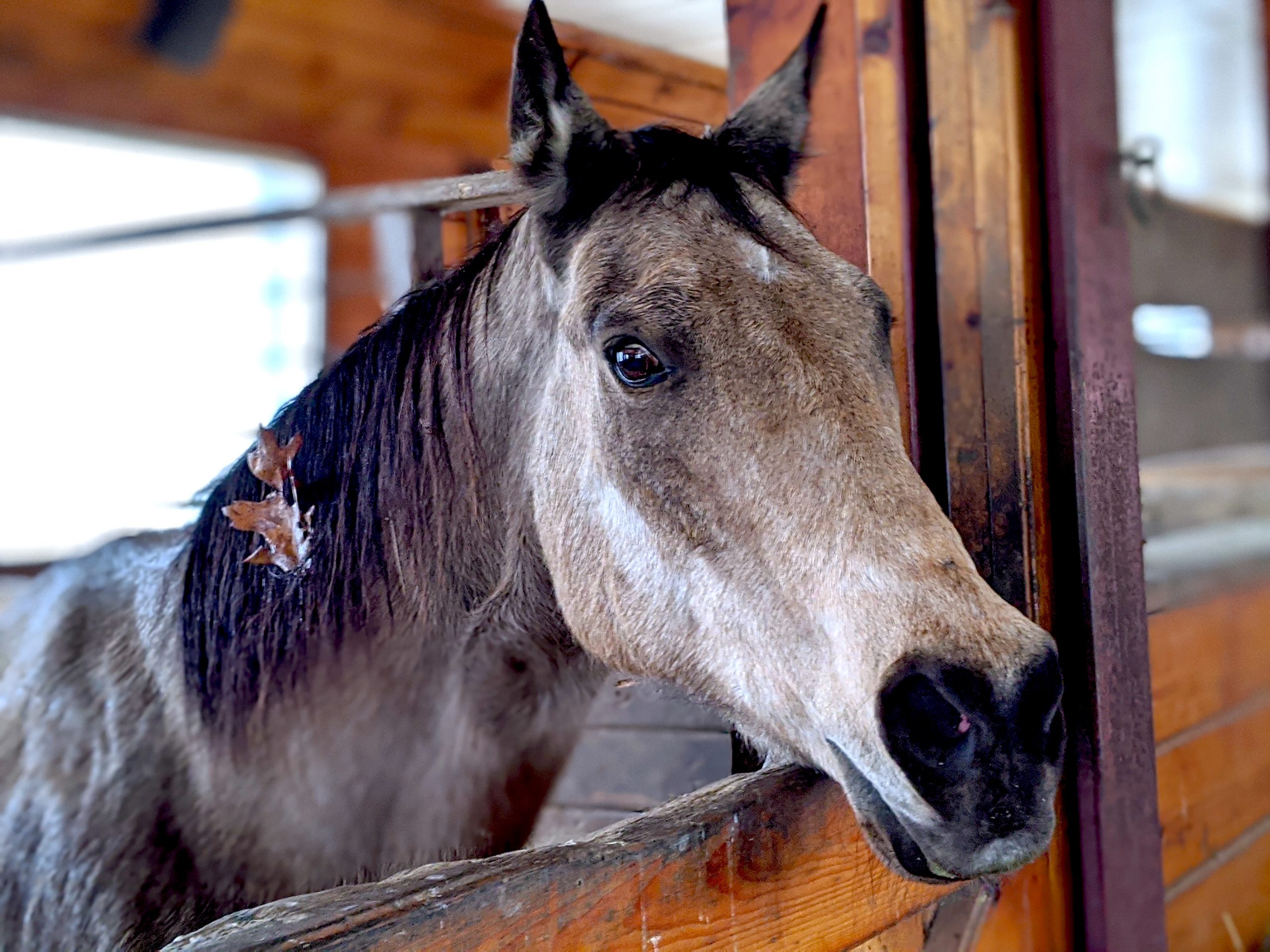 The road to rehabilitation was challenging for then 30-year-old Molly. When she stepped off the trailer at the Society, she cribbed on everything within reach, and even with careful re-feeding, she choked from bolting the tiny amount of grain in her feed tub. Staff and veterinarians quickly intervened, but it was a close call for Molly. Resilient, she rallied and went on to regain her health.