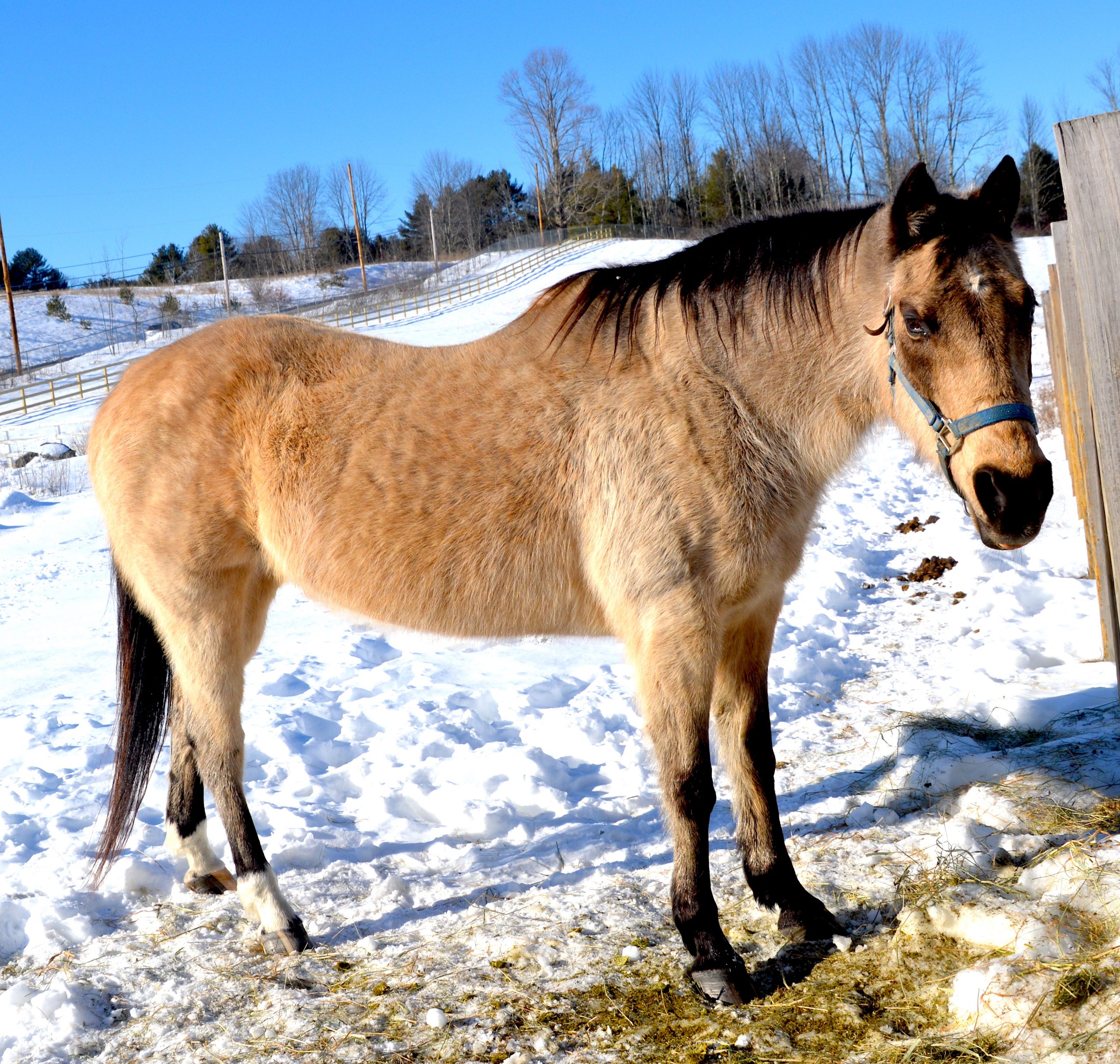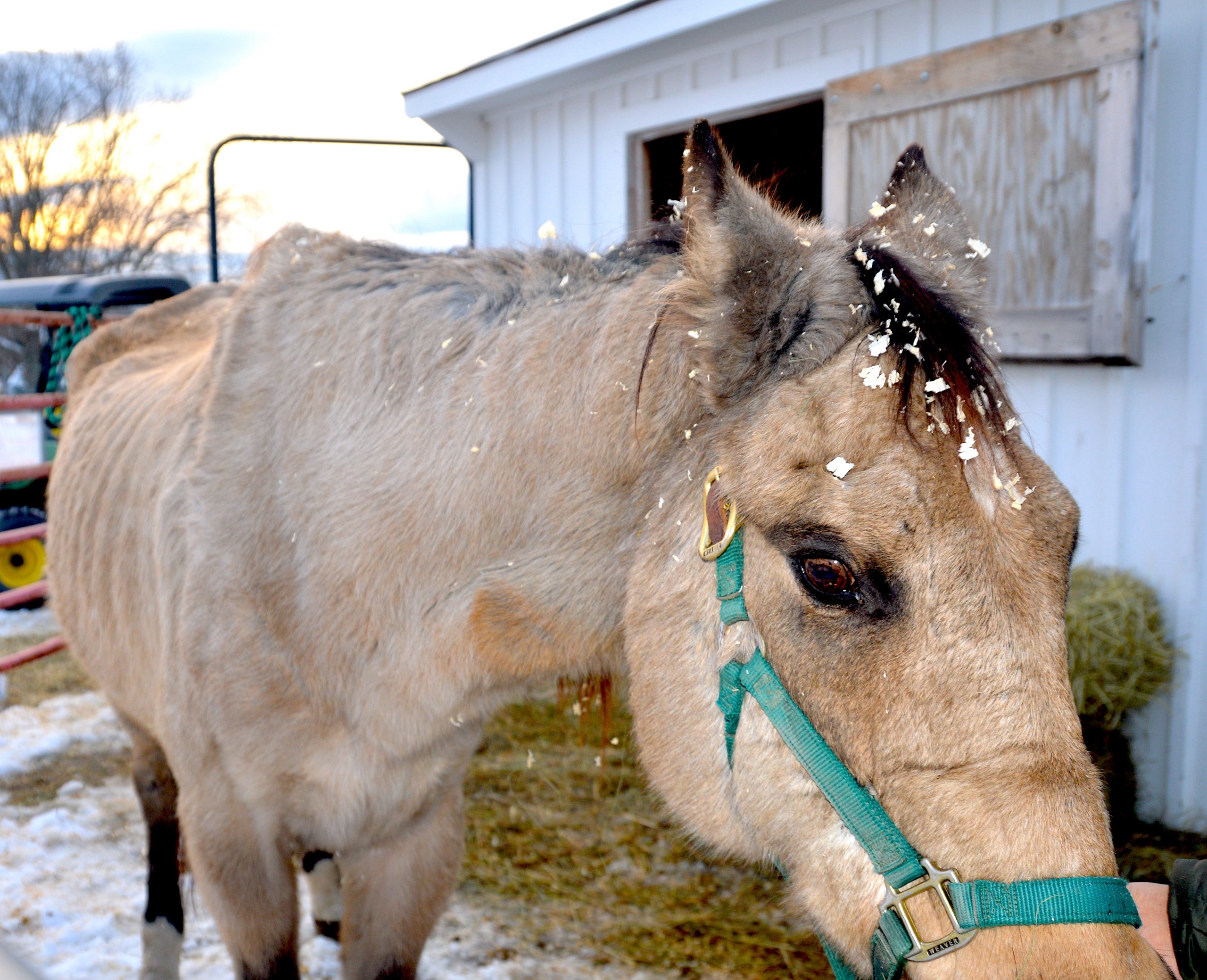 Molly is a purebred, registered Quarter Horse, and the beginning of her life didn’t include starvation and neglect. She was well-trained and proved successful in multiple types of competitions. Pleasure riding and even time spent as a lesson horse filled up Molly’s time and made use of her skills when she was younger. With her gorgeous buckskin coat and sweet personality, it’s easy to understand how she received such wonderful training, love, and care.