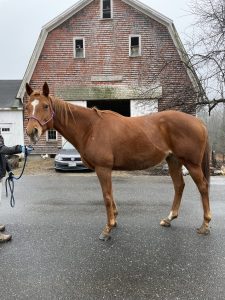 Meet My Man Metro, a sweet chestnut gelding who is looking for a new place to call home. His owner successfully showed him on the NHHJA circuit for 3 seasons, took home ribbons, and had a lot of fun. Their fun came to an abrupt halt late in 2023 when he tripped at the canter and his neuro status was called into question. Long story short, a trip to UPenn/NBC and he has definitive compression in his C5-C6 vertebrae with osteoarthritis in C6-C7, making him unfit (read: unsafe) to ride. He is not a danger to himself (i.e. falls unexpectedly) or to handlers from the ground but he is a companion only placement, no riding.