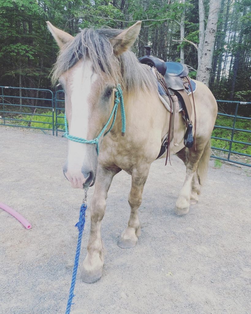 Tripp (one of the Neglected 20) has only been at the ranch for a short time, but he is already making powerful connections with staff and clients. Because of his traumatic history, he seems to develop an empathetic bond with many clients in our therapy program. There is a softness and mutual respect. He helps us teach important lessons in vulnerability, trust, and boundaries. He is an intelligent and sweet-natured guy who is the epitome of a gentle giant. He loves kids, has realized ear rubs are amazing and enjoys licking hands and arms at the end of training sessions. He is not yet being ridden, but he is slowly understanding and accepting the idea of becoming a riding horse. We will continue to move at his pace as earning his trust and making him feel safe is our number one priority. All of our staff members have developed a love affair with his eyelashes. They are trying to help him understand that our deep desire to smooch the side of his muzzle is not an attempt to bite him but, in fact, an honest expression of love that many horsewomen struggle to contain.”