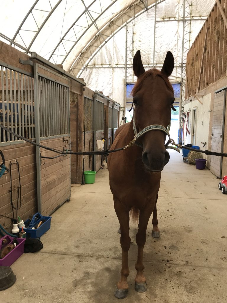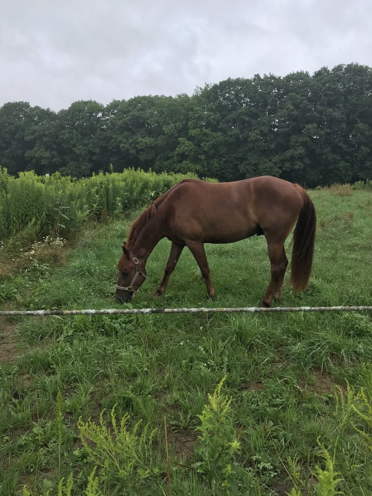 From his adopter: “My adopted horses’ name is Ziggy now. He was Apollo before I adopted him in July of 2021. He now loves to eat grass and go on trail rides. And I am working with him doing dressage and endurance training. He also has new friends. Their names are Epic, Bouji, and there is wa hole community of horses and volunteering at his new home/barn. What I like most is his willingness to try new things and please me!”
