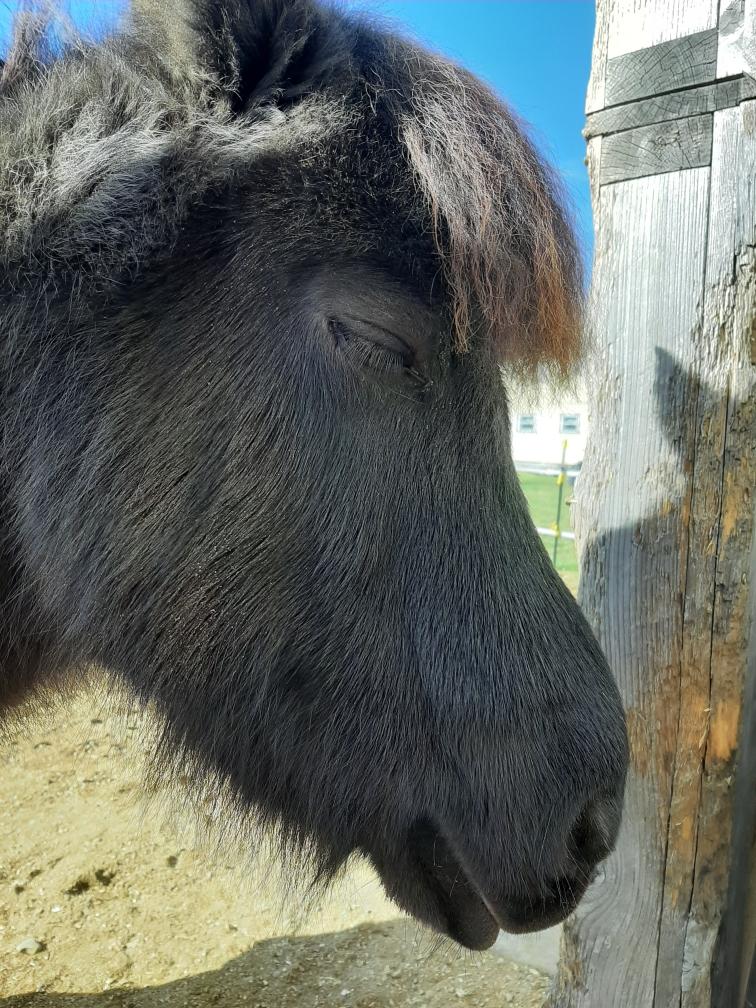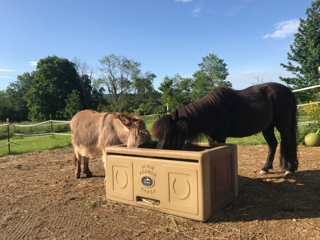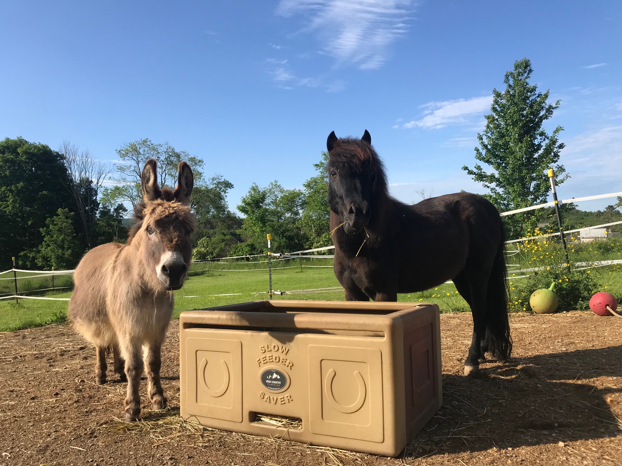 Dolan loves to have visitors and hang out with us. He is very sociable and loves to help us when we are working on/or in the barn and run-out, etc. His best buddy is Eddie, our miniature donkey, who was also a rescue from Horses with Hope. We love Dolan’s sweet temperament. He is so well behaved (especially for a pony, so we’ve been told). We love how he nickers or whinnies at us when he sees us or when he knows that it is close to eating time. ”