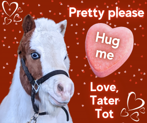 Tater Tot came to the MSSPA last fall, overweight and with seriously neglected feet. This mini horse gelding, with his unique looks, instantly mesmerized everyone who met or saw him. Although he has recently been adopted, this tiny horse would still be delighted with a big hug from you this Valentine’s Day!