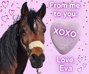 Learn a bit about each horse below and choose who will “Be Yours” this Valentine’s Day! Click on your choice and show your love with a donation of $35 or more for a chance to win the gorgeous repurposed horse blanket art shown below.