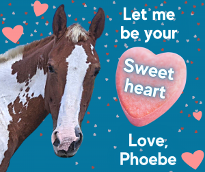 Phoebe also came to the Society as part of the Neglected 20 with young filly Izzy in tow. This Mustang mare was afraid to be caught and handled but eventually showed her brave side to the staff. She’s enjoying her days at the farm as she continues to grow strong and comfortable around humans. Will she be your sweetheart this Valentine’s Day?