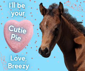 Arabian Breeze or “Breezy” celebrates his first birthday this month. From the start, this Arabian gelding has been a fearless horse who loves attention from humans and other horses. He is busy growing and learning all he can about the world. This confident fella would love to be your cutie pie this Valentine’s Day!